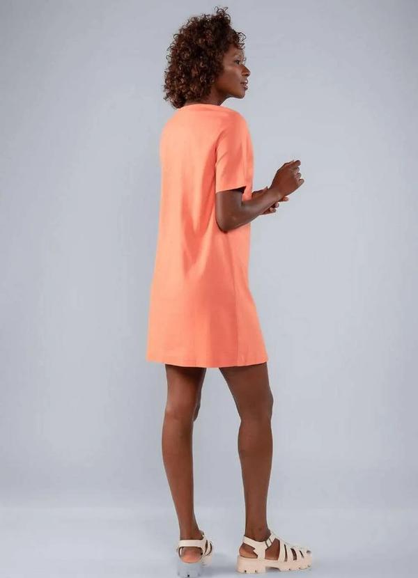 Lamis - Vestido Curto em Viscolinho Decote V Manga Curta Salmao