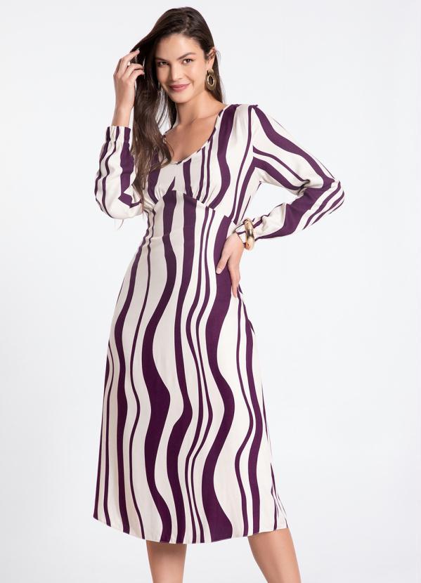 Lunender - Vestido Curto em Viscose com Manga Longa Roxo