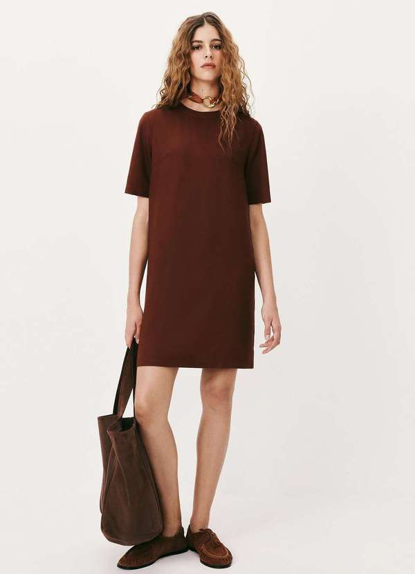 Com um toque fluído e sofisticado, esse vestido é a escolha perfeita para quem busca conforto sem perder o estilo. Confeccionado em viscose creponada, ele possui caimento solto ao corpo, proporcionando leveza e movimento. O decote redondo careca com gola aplicada adiciona um acabamento refinado, enquanto a manga média traz um charme discreto. O detalhe de gota posterior com botão e azelha finaliza a peça com delicadeza. Detalhes da peça: Viscose creponada Modelagem reta Comprimento curto Decote redondo Manga média