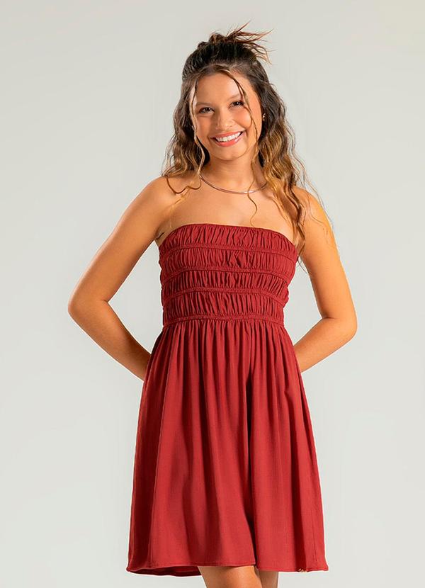 Cativa Teen - Vestido Curto em Viscose Marrom Escuro