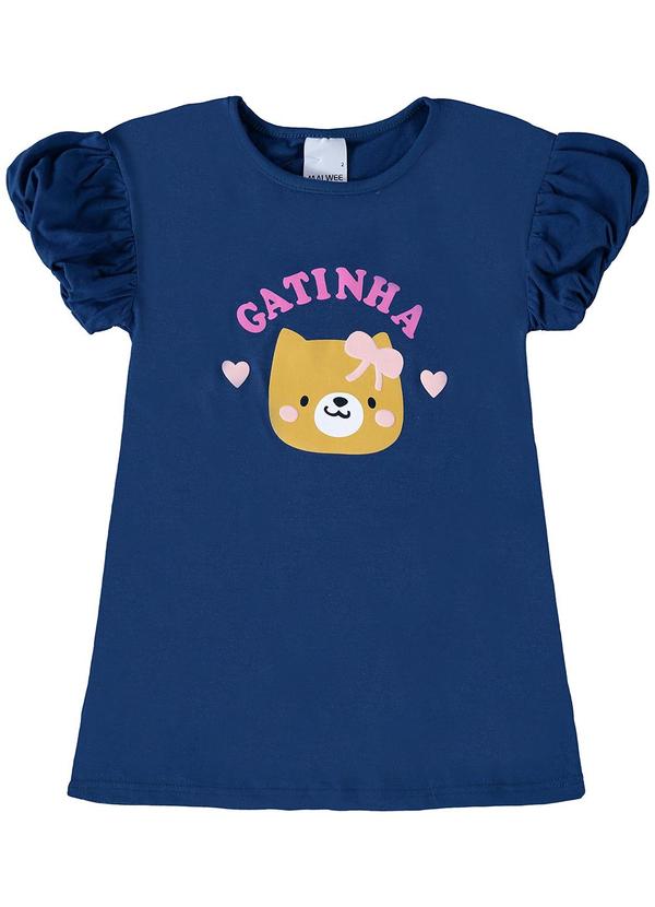 Malwee Kids - Vestido Curto Gatinha em Malha Azul Escuro