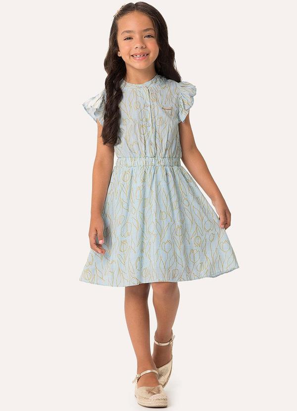 Carinhoso - Vestido Curto Godê Tulipas Azul Claro
