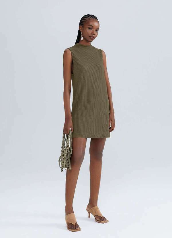 Vestido curto elaborado em ribana canelada. Com uma gola alta que adiciona um toque de sofisticação, este vestido é perfeito para qualquer ocasião. Detalhes da peça: Em ribana Canelada Modelagem reta Gola alta Sem mangas Com elástico costas