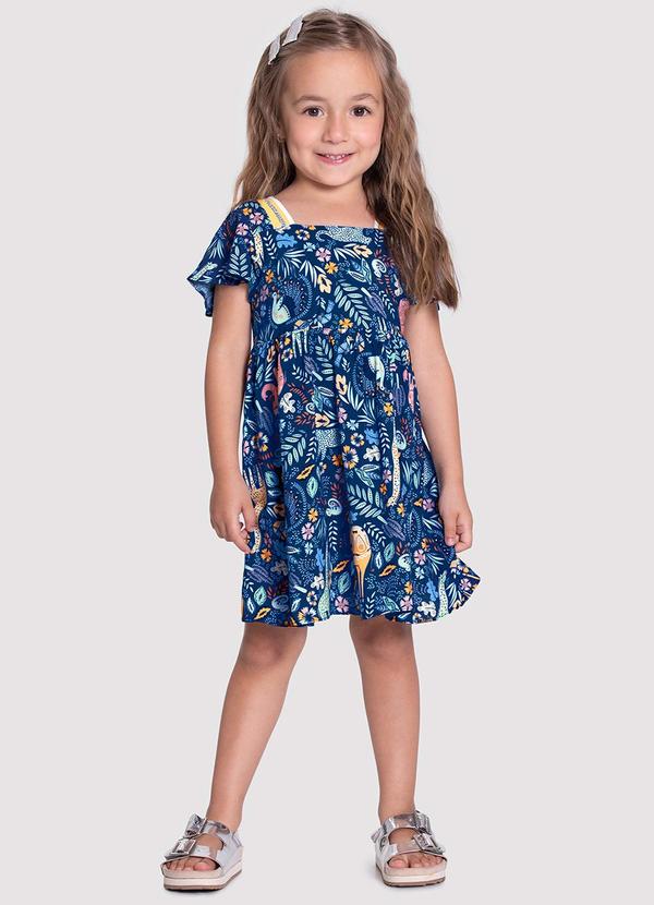 Alakazoo - Vestido Curto Infantil Menina em Viscose Estampado Azul
