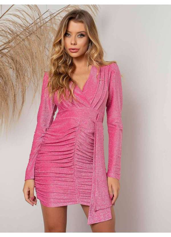 Susie Modas - Vestido Curto Lurex Feminino Rosa