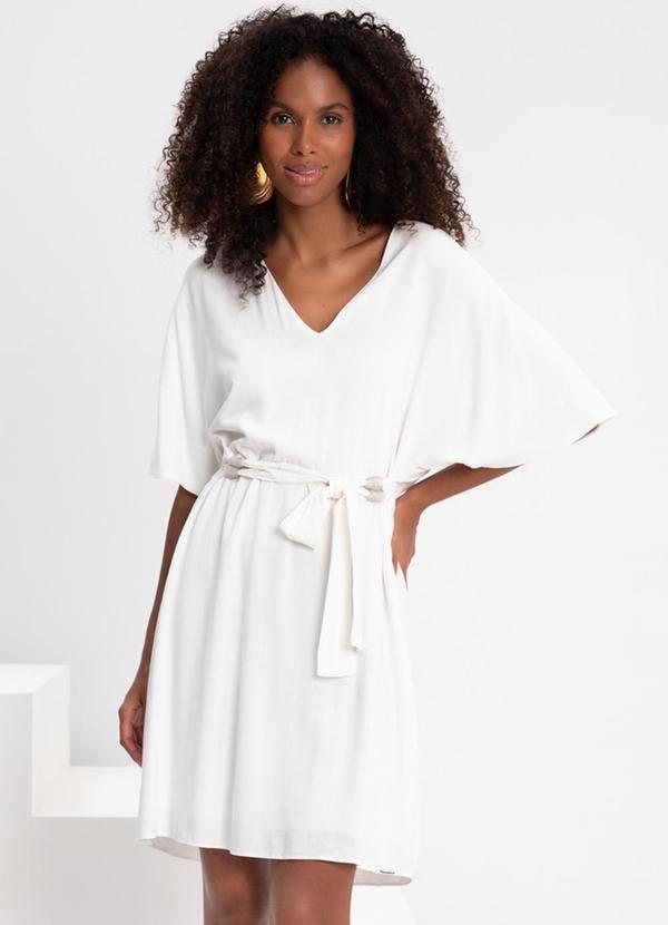 Lunender - Vestido Curto Manga Amplas Faixa Decote V Branco