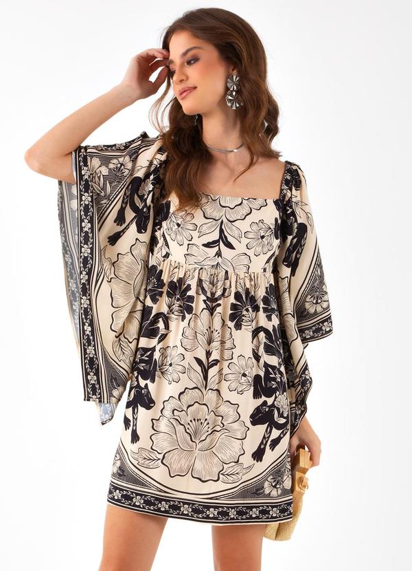 Farm - Vestido Curto Manga Selvática Bege
