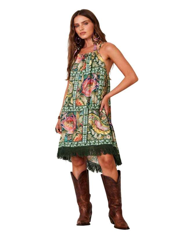 O Vestido Curto Mullet Yacamim é a peça perfeita para quem busca sofisticação e estilo sem abrir mão do conforto. Com alças ajustáveis por túnel, ele garante um ajuste perfeito ao seu corpo, enquanto o corte mullet, com a parte de trás mais longa, adiciona um toque moderno e elegante. A barra com franjinhas traz um charme especial e ainda mais movimento à peça, tornando-a ideal para diversas ocasiões. A estampa geométrica verde é moderna e sofisticada, enquanto a composição de 100% viscose proporciona leveza e toque suave à pele. Características principais: Vestido mullet de alças com túnel de regulagem, proporcionando ajuste perfeito Detalhe de franjinhas na barra que traz mais movimento e estilo Estampa geométrica verde, moderna e cheia de personalidade Composição do tecido: 100% Viscose, que garante leveza e conforto durante o uso.Sobre a confecção: Este vestido é confeccionado pela Yacamim, 100% nacional, garantindo qualidade e acabamento impecável. Importante observar que, devido à iluminação e outros fatores, a peça pode apresentar variações de tonalidade. Acessórios não acompanham o produto. Instruções de Lavagem: Lavar à mão ou na máquina, utilizando ciclo suave Não utilizar cloro ou derivados Secar à sombra Passar a ferro em temperatura baixa Não lavar a seco.Medidas da modelo: Altura: 1,72m Busto: 89 cm Cintura: 63 cm Quadril: 88 cm Com o Vestido Curto Mullet Yacamim, você estará pronta para brilhar em qualquer evento, trazendo um look único e cheio de estilo. Não perca a chance de garantir essa peça incrível para o seu guarda-roupa!.