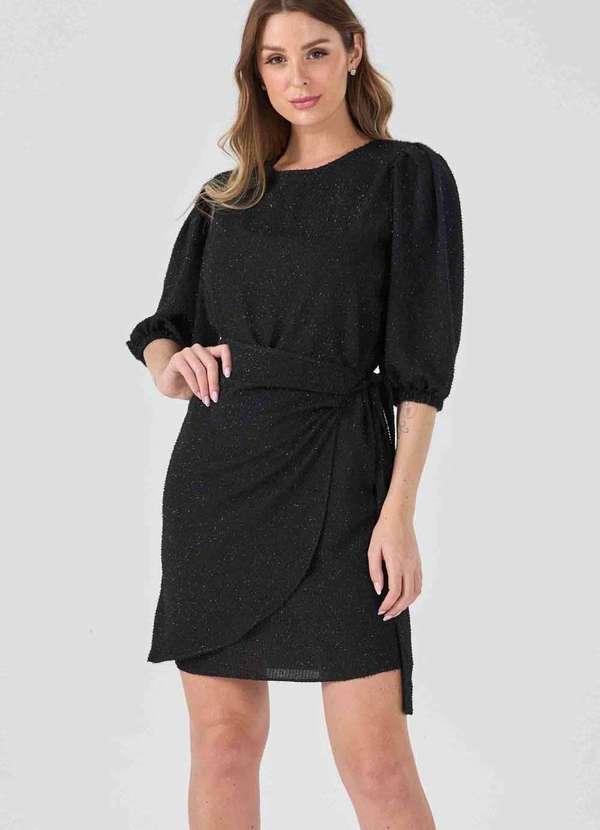 Pks - Vestido Curto Pks Pareo Lurex Preto