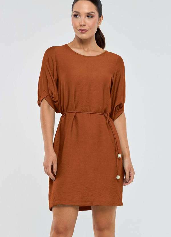 Pks - Vestido Curto Pks Viscose com Cinto Marrom
