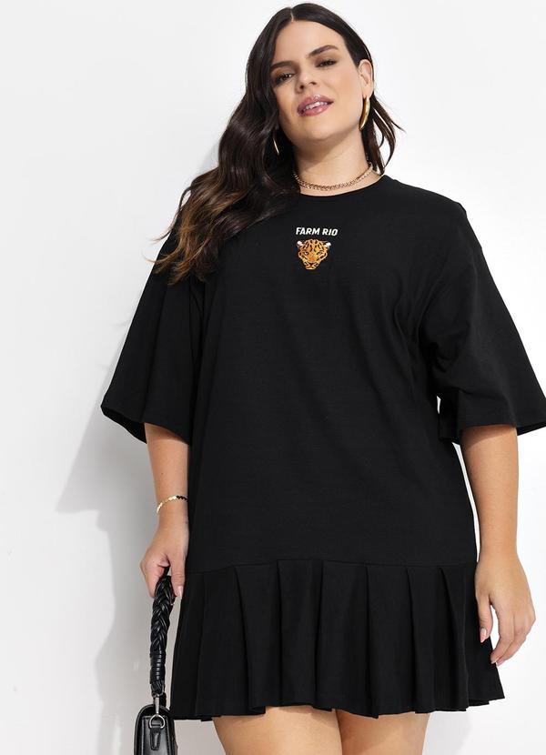 Farm - Vestido Curto Pregas Bordado Preto