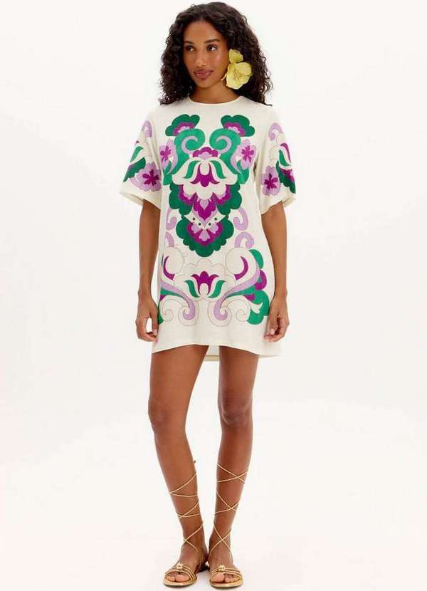 Lança Perfume - Vestido Curto Solto Estampado com Amarração Posterior A2108