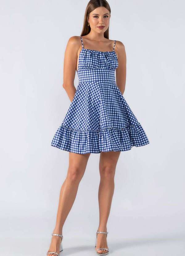 Lamis - Vestido Curto Xadrez Alça Fina Regulavel Azul
