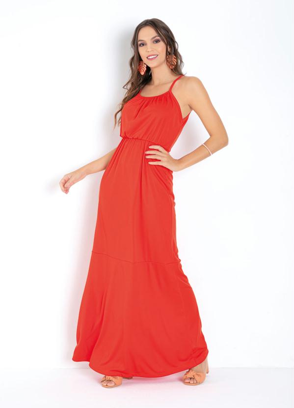 Outlet - Vestido de Alças Laranja com Elástico na Cintura