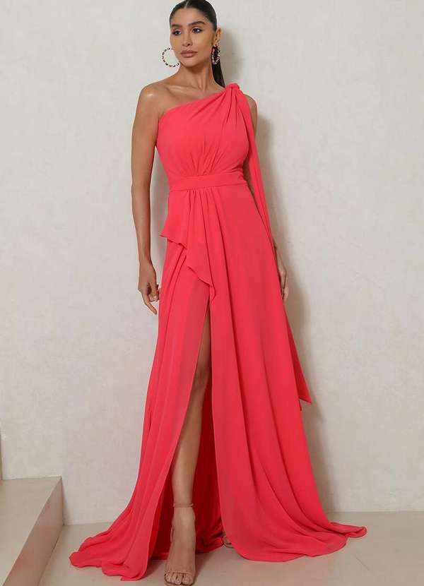 Dot Clothing - Vestido Dot Clothing Lilian com Fenda Coral Laranja