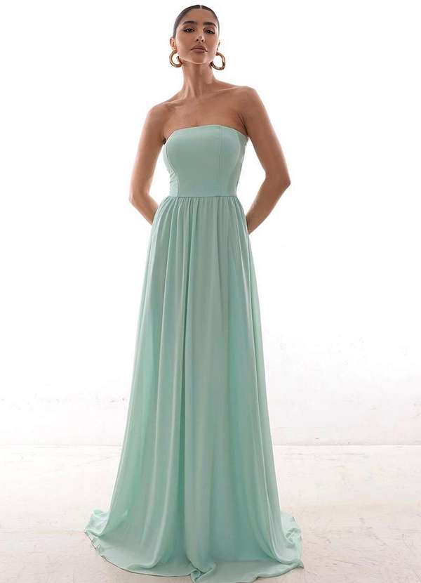 Dot Clothing - Vestido Dot Clothing Longo Capa Drapeada Verde Claro Verde