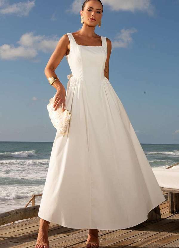 Dot Clothing - Vestido Dot Clothing Longuete Hortensia Laco Branco
