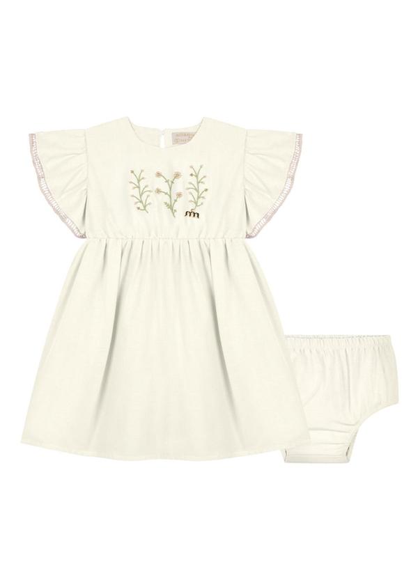 Milli e Nina - Vestido e Tapa Fralda em Tricoline Bege