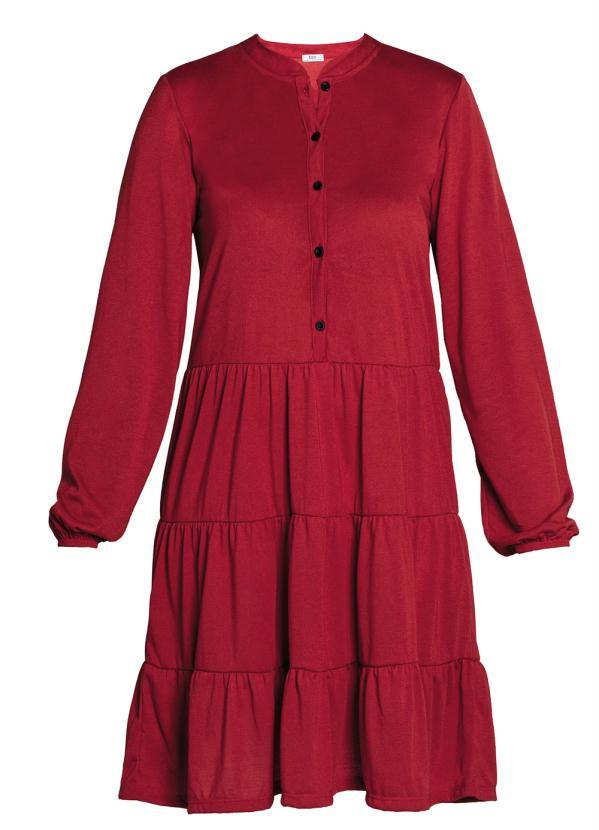 Outlet - Vestido em Camadas Mangas Longas Vermelho