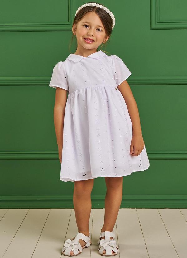 Pokótinha - Vestido em Tecido Bordado Branco