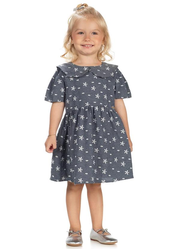 Amada - Vestido em Tecido Plano Jeans Bordado Azul