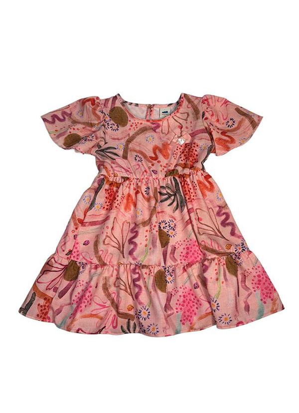 Marlan - Vestido em Tecido Rajado Floral Aquarelado Rosa
