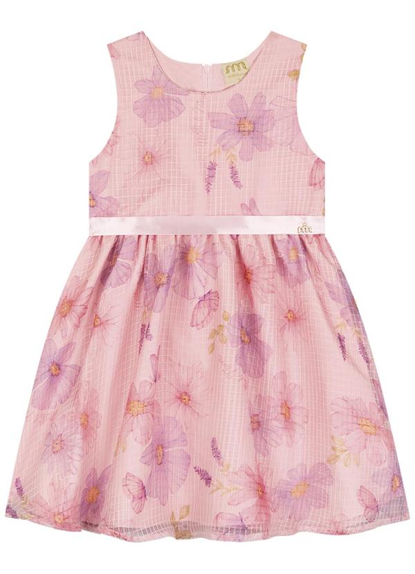Milli e Nina - Vestido em Tecido Transparencia Flores Rosa