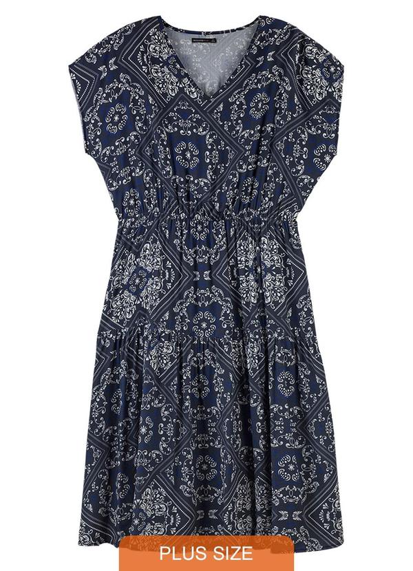 Rezzato - Vestido Estampado Adulto Plus Size Feminino Azul