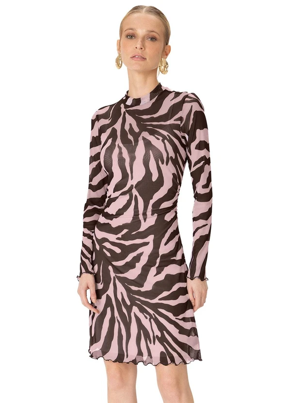 Enfim - Vestido Evasê Animal Print em Tule Rosa