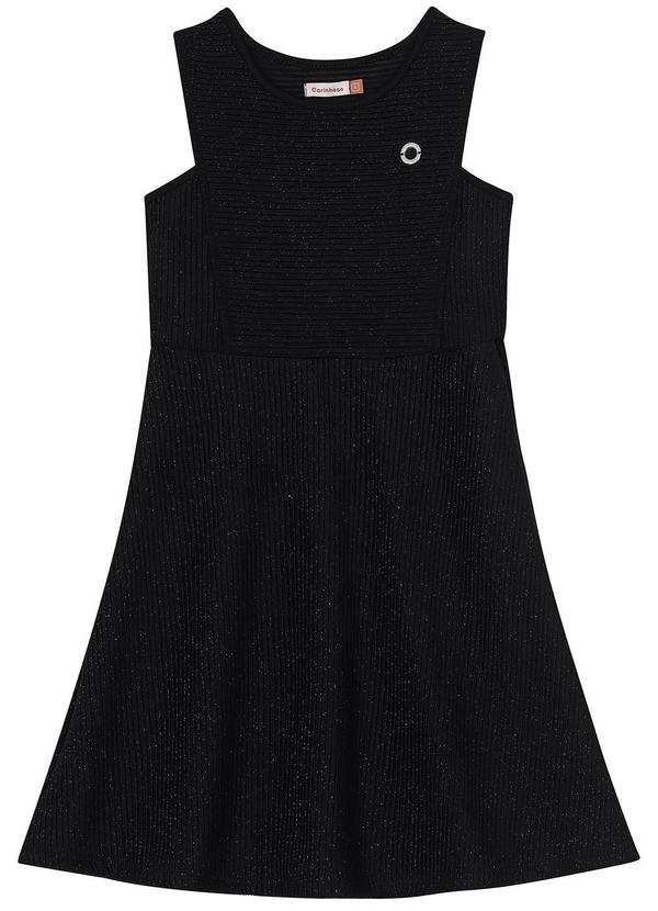 Carinhoso - Vestido Evasê Canelado com Brilho Preto