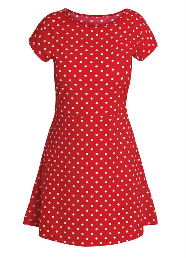 Moda Pop - Vestido Evasê com Estampa Poá Vermelho