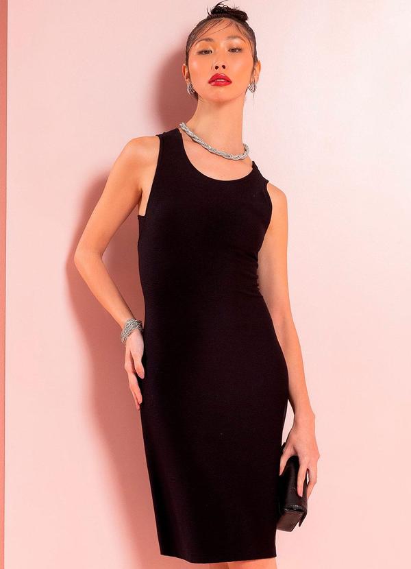 Gris - Vestido Feminino com Alça Canelado Preto