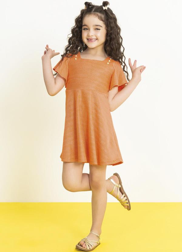 Cativa Kids - Vestido Feminino com Bordado Manual Laranja