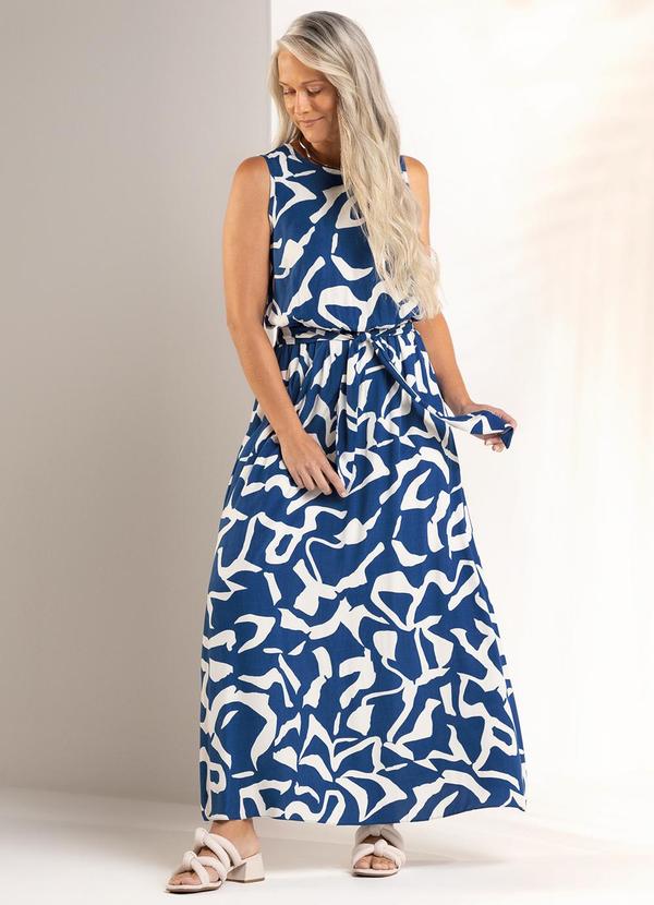 Marialícia - Vestido Feminino Longo Abstrato Azul
