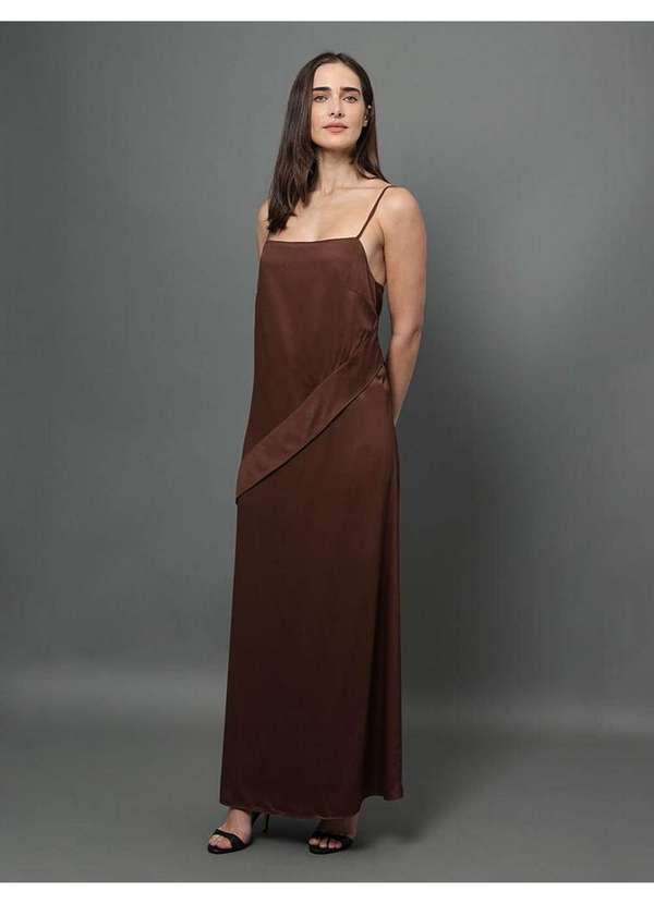 Calvin Klein Jeans - Vestido Feminino Longo com Faixa Frontal Calvin Klein - Marrom Marrom