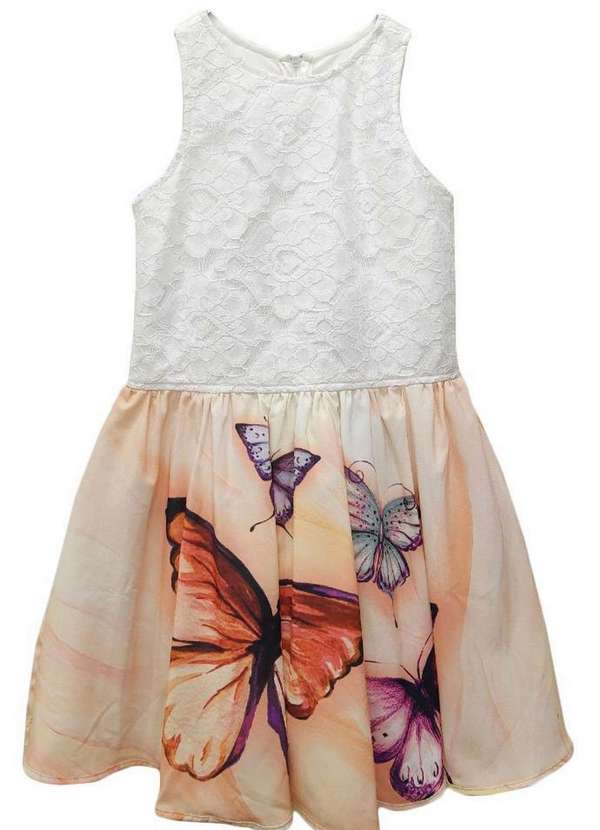 Vestido Festa Borboletas Estampado Kukixo Ref: K2201 - 1 ATENÇÃO! VESTIDO PRIMEIROS PASSOS (tam 01 ao 03) acompanha faixa VESTIDO INFANTIL (tam 04 ao 12) acompanha shortinho 100% Poliéster! Gola: redonda. Manga: Curta/regata. Características: Possui acabamento estampado renda e amarração na cintura. Sobre a marca: Perfeita para vestir as crianças com muito estilo e criatividade!
