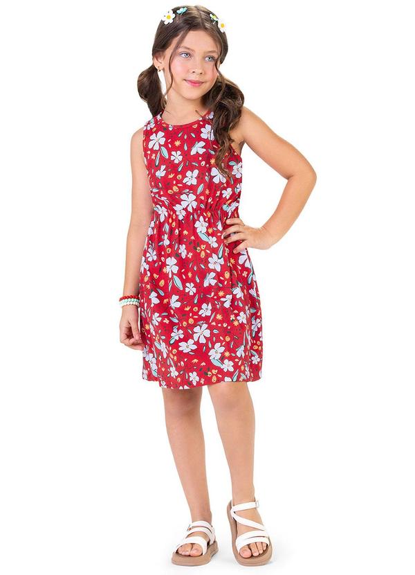 Alenice - Vestido Floral sem Mangas Menina Vermelho