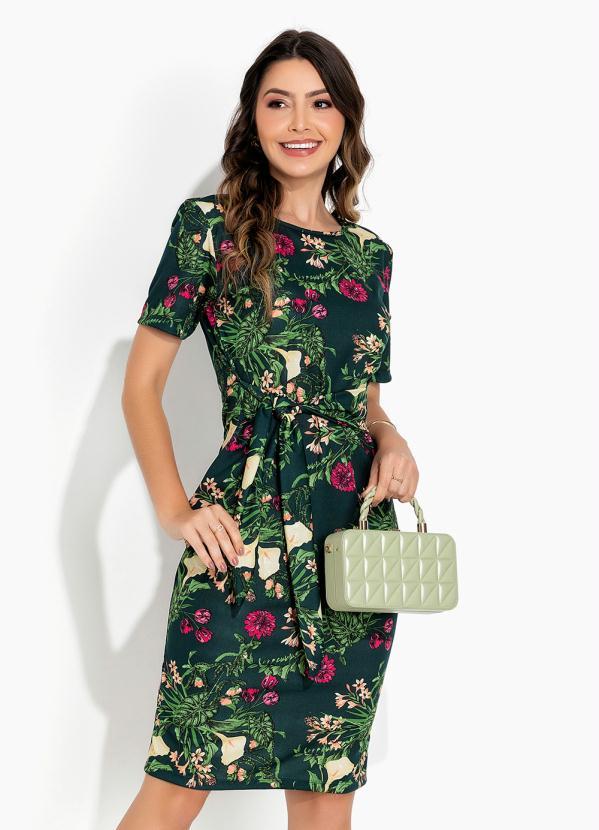 Rosalie - Vestido Floral Verde com Faixa Moda Evangélica