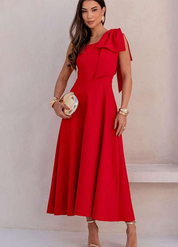 Miss Misses - Vestido Glaucia um Ombro So C/Laco Vermelho