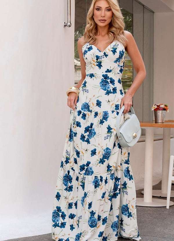 Miss Misses - Vestido Graziela Longo Estampado C/Alca Azul