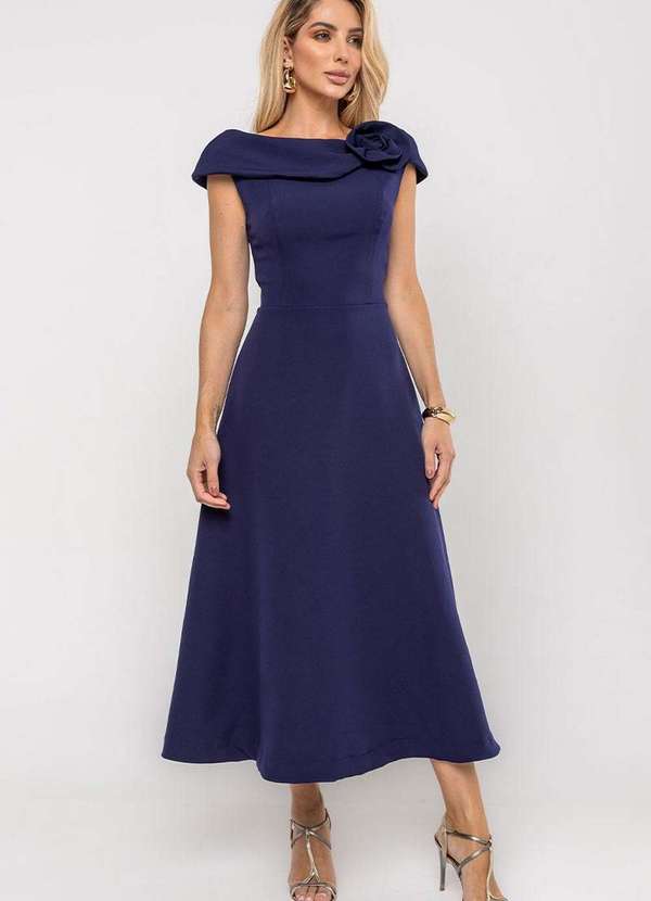 Miss Misses - Vestido Hilda C/Detalhe Flor na Gola Azul