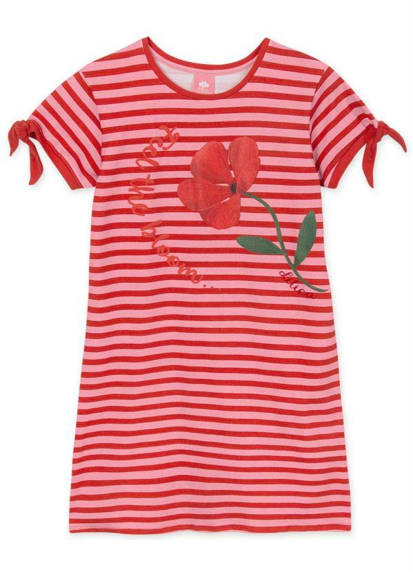 Lilica Ripilica - Vestido Infantil com Estampa Listrada Rosa