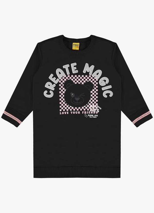 Rovi Kids - Vestido Infantil de Moletom Manga Longa Preto