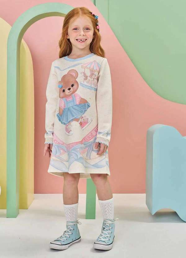 Kukiê - Vestido Infantil Kukiê Urso Fashion Estampado