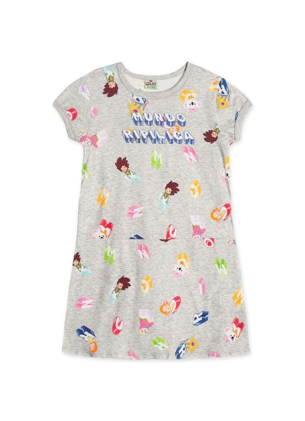 Mundo Ripilica - Vestido Infantil Manga Curta Mundo Ripilica Cinza