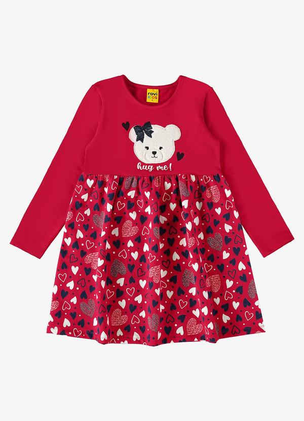 Rovi Kids - Vestido Infantil Manga Longa Estampado Vermelho