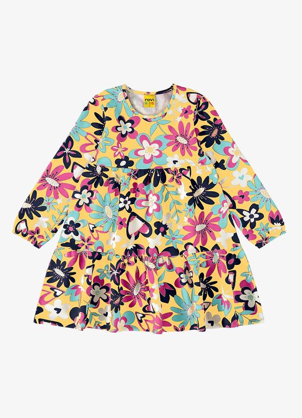Rovi Kids - Vestido Infantil Manga Longa Florido Amarelo