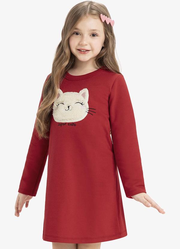Rovi Kids - Vestido Infantil Manga Longa Vermelho