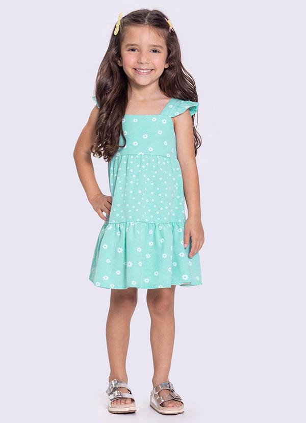 Alakazoo - Vestido Infantil Menina com Estampa Flores Azul