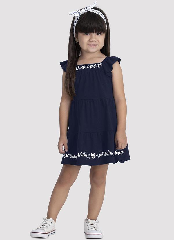 Alakazoo - Vestido Infantil Menina com Estampa Relevo Azul